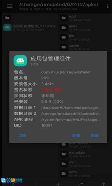 支持查看安装包大小、签名、包名以及更新时间等信息。