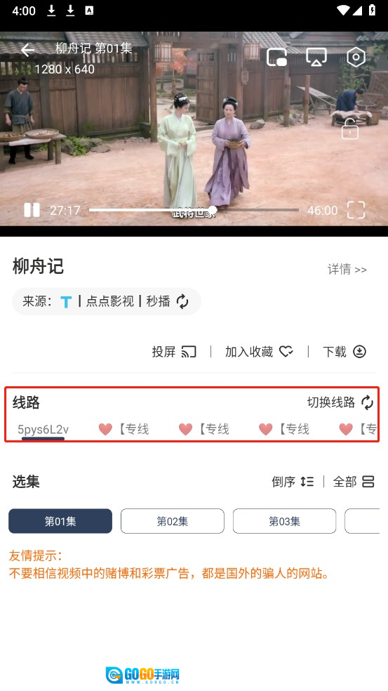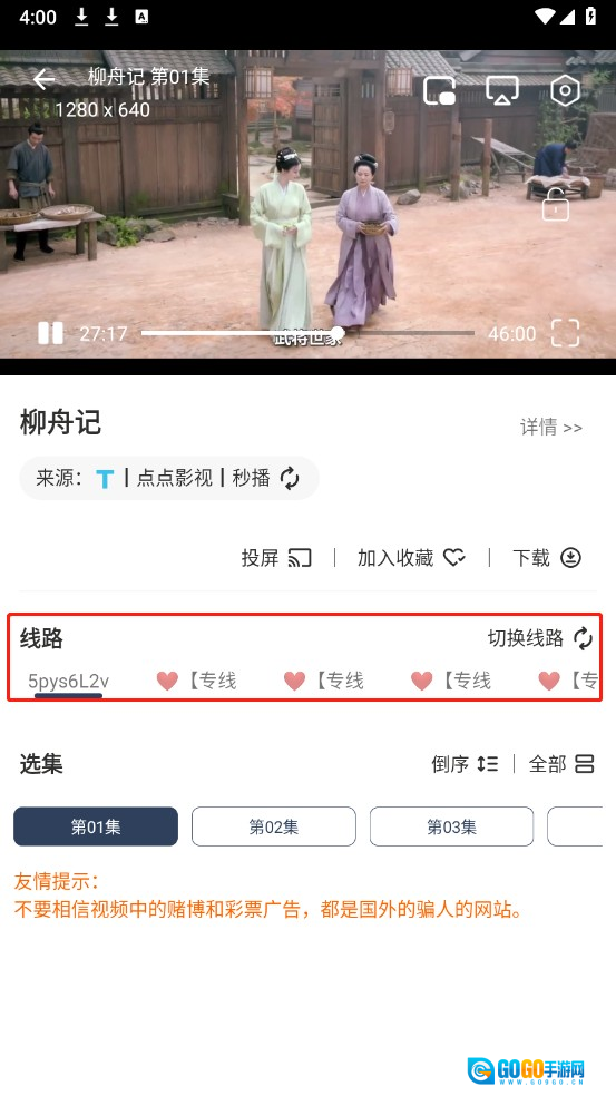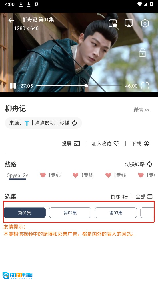 4、点击“影视”选项,挑选相应集数,就能开始观看。