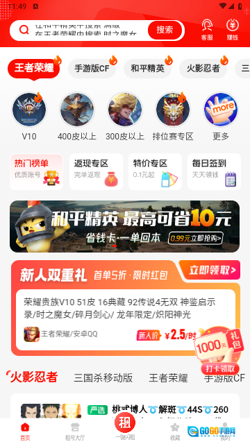 1、全品类的游戏覆盖——提供当下热门游戏(王者、lol、和平精英等)、火爆新游的账号出租