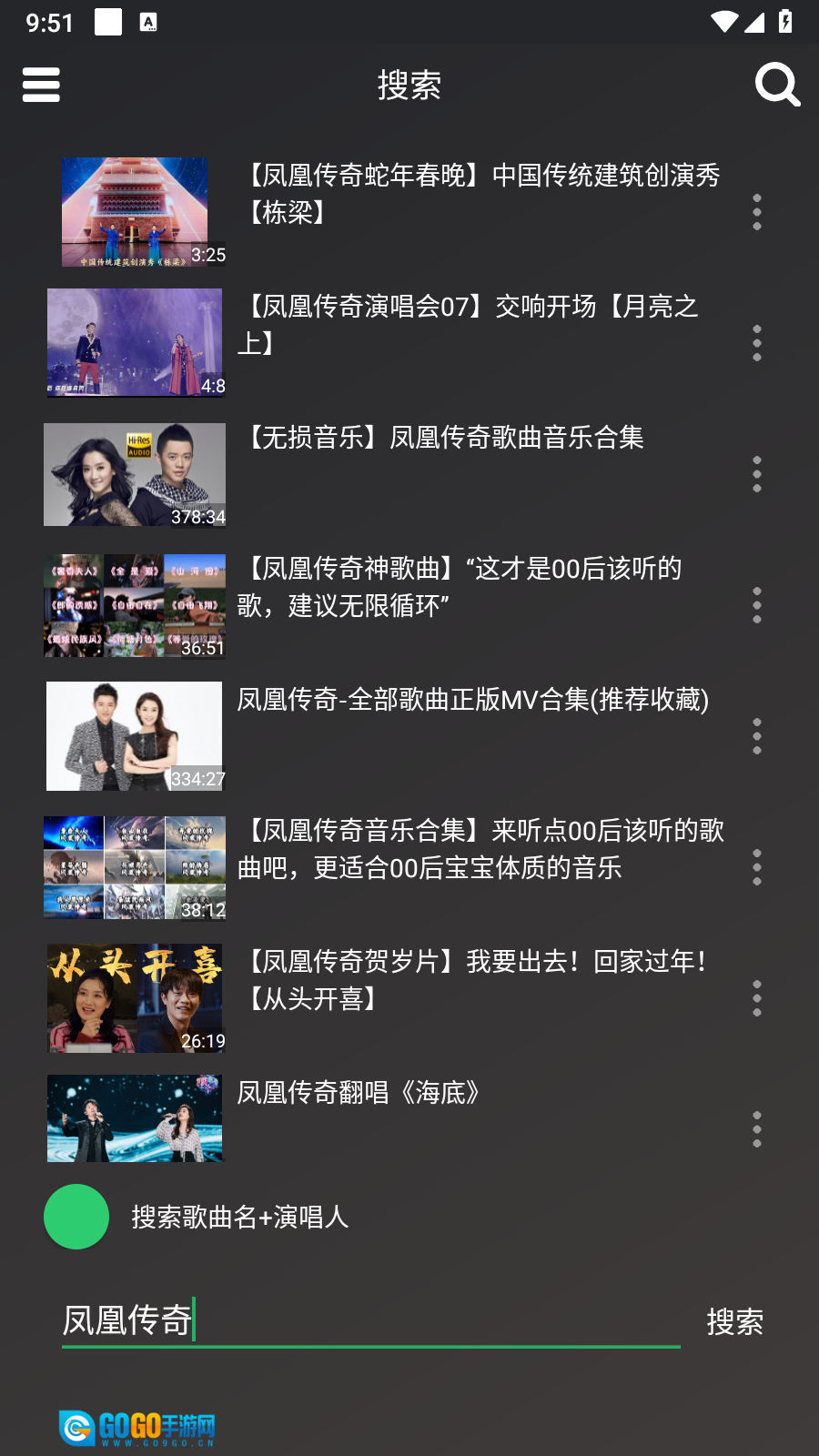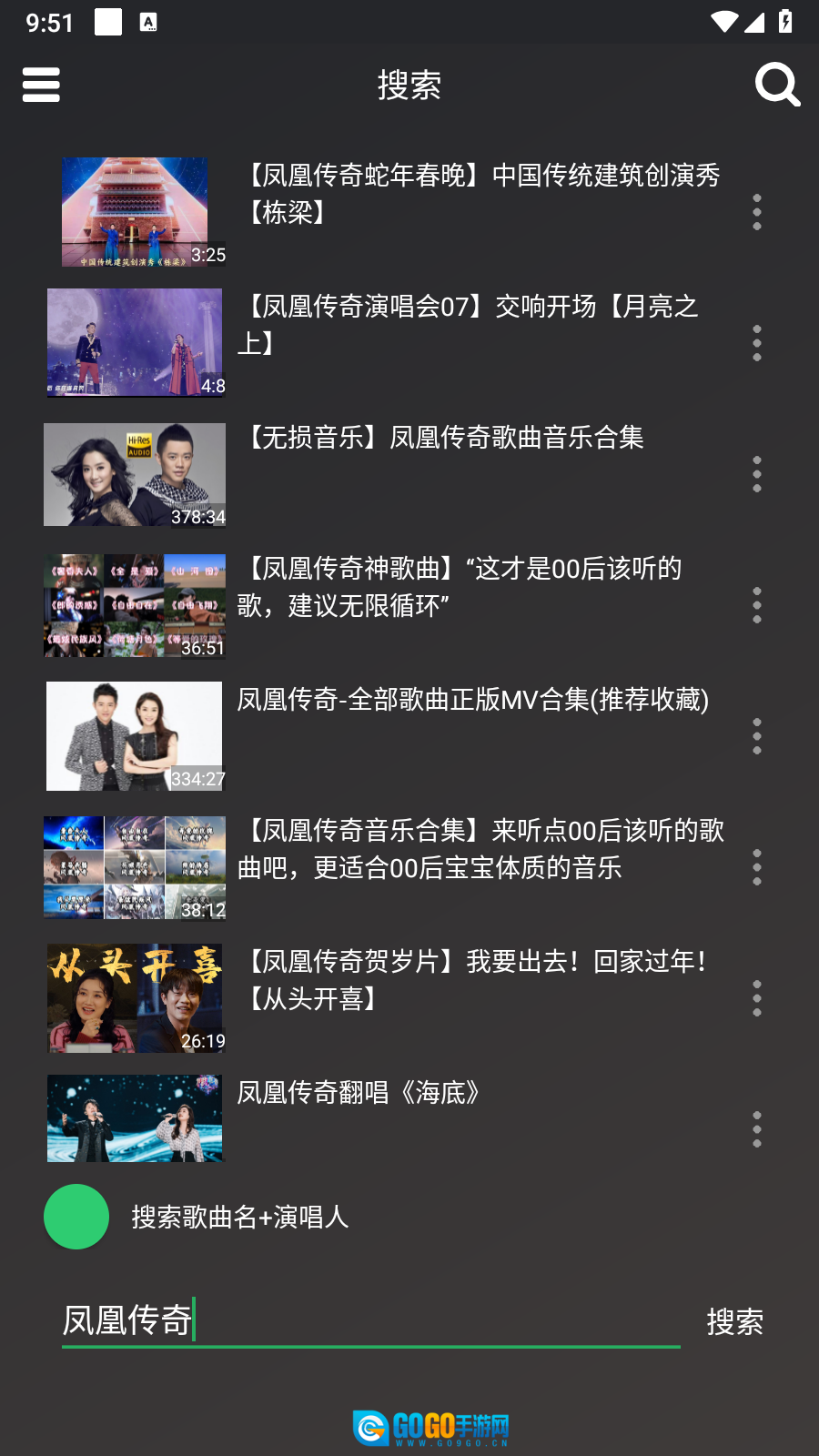 3.点击搜索后,上面就会显示搜索结果,点击音乐即可播放