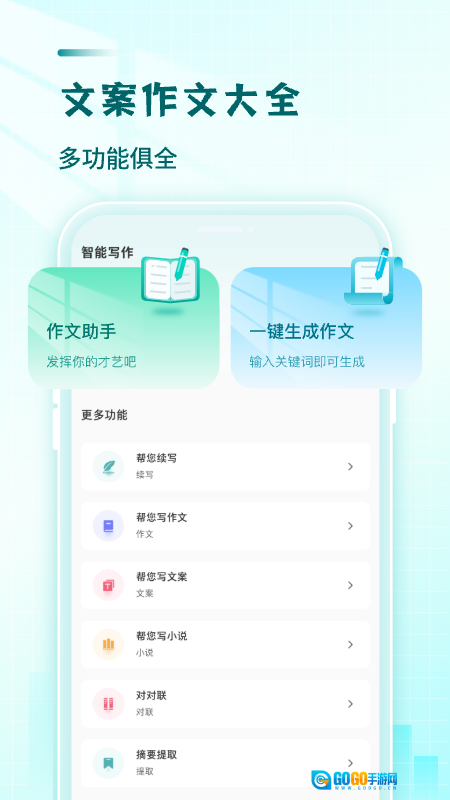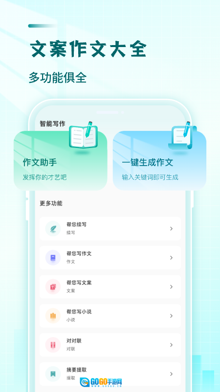 1. 启动文章作文生成器App,于首页挑选“智能写作”功能。