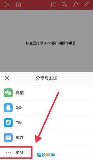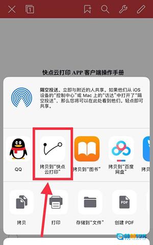 4、在安卓手机上操作,点击分享选项,接着选择以PDF文档发送,最后挑选快点云打印。