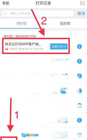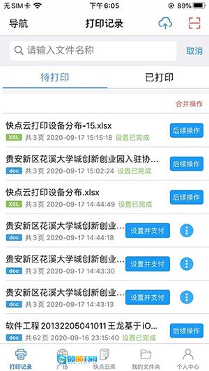 6、选择快点云打印后,便会进入快点云打印。在快点云打印界面,当显示“文件上传成功”时,找到“打印记录”,就能看到自己已成功上传的文件。接着点击“设置并支付”,然后点击“确认并支付”。