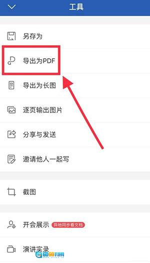 5、在苹果手机上,点击如下图所示的小图标,接着选择“导出为PDF”。完成保存后,再次重复上一步操作,即点击“分享与发送”,然后点击“更多”,最后选择“快点云打印”。