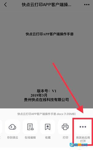 如果是PDF文档,可直接选择应用“快点云打印”打开;若是非PDF文档,则需先转成PDF。你既可以先在电脑上完成转换,也能直接在手机软件WPS里进行转换。