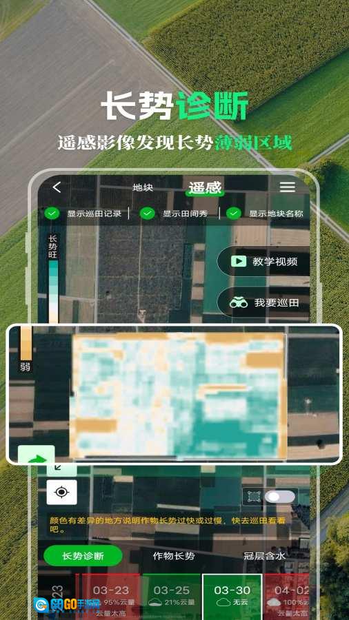 1、遥感如同千里眼,MAP智农测亩仪,无需出门安装,就能知晓庄稼何处长势良好、何处欠佳,以及是否缺肥。