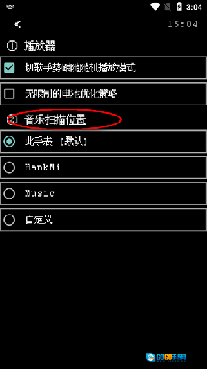 3、首先需对音乐扫描位置进行设置。