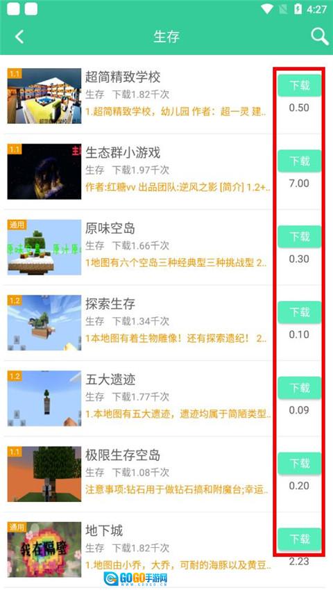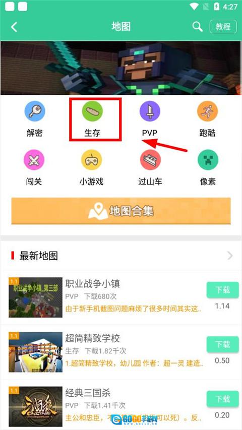 2、接着挑选自己钟爱的地图类型,比如生存类地图。