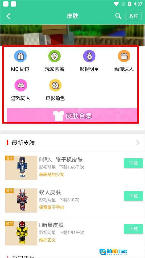 2、你可以挑选自己钟意的皮肤类型,要是感兴趣,还能点击查看皮肤合集。