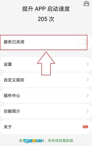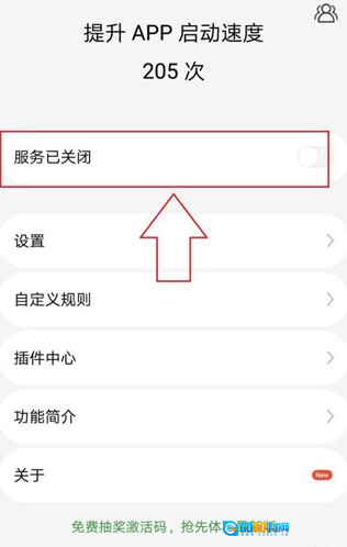 1、应用完成后,手机会快速安装该应用。安装完毕,打开应用,进入页面后开启服务。