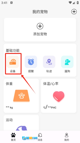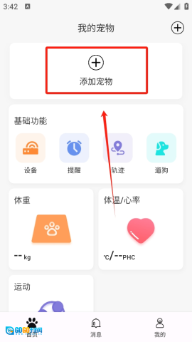 2. 借助首页的“添加宠物”功能,能便捷地为软件增添需监控的宠物,操作简便。