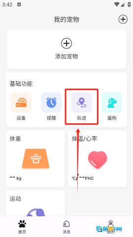 3、轻点“轨迹”功能,便能查看宠物今日的运动状况,使得主人能够随时知晓宠物的活动状态。