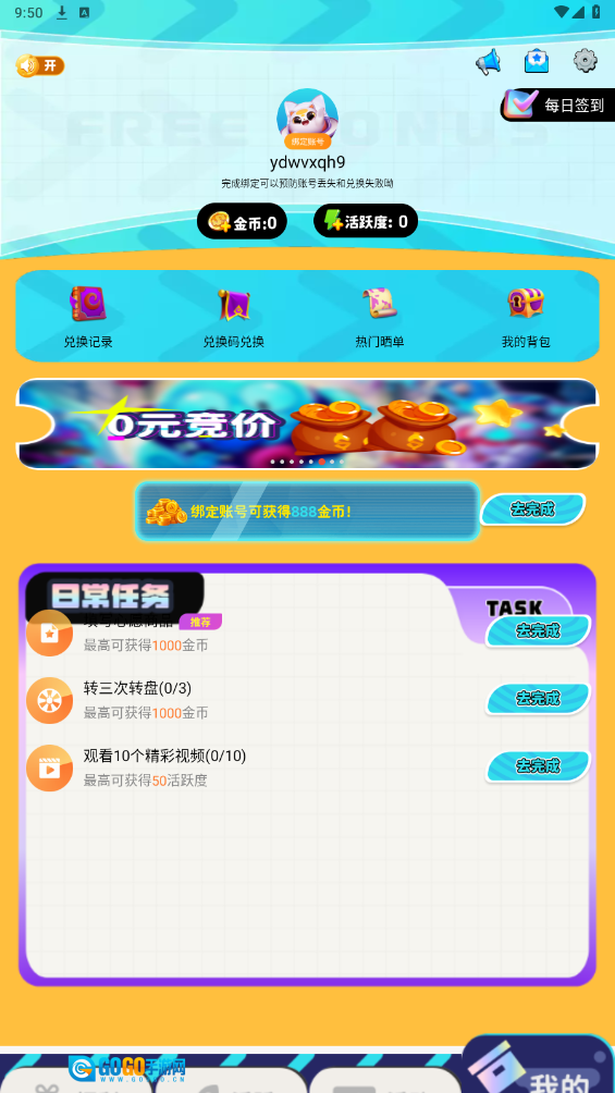 3、接着点击“我的”,通过完成日常任务获取金币,进而用于皮肤兑换。