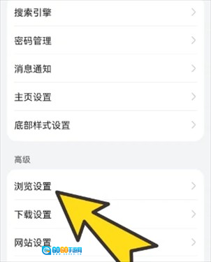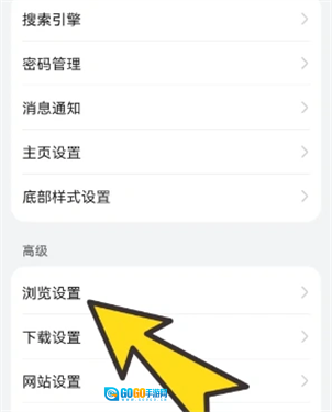 1. 开启无国界·全球通bobo浏览器,轻点浏览设置。