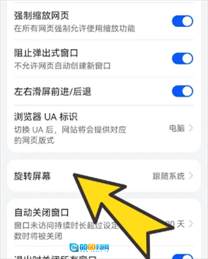 2. 打开设置界面,在其中查找旋转屏幕选项。