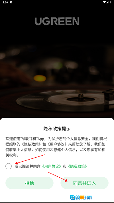 1、在本站后打开进入软件,点击同意隐私用户协议进入;