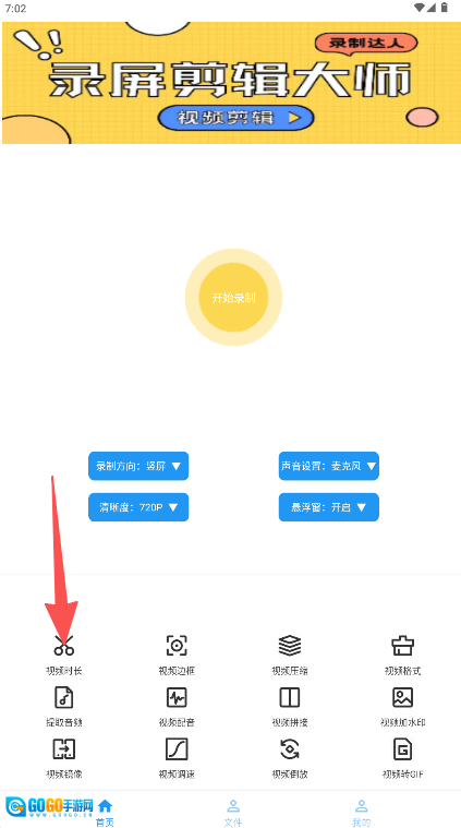1. 在软件的首页,点击“视频时长”,以此启动屏幕录制功能。
