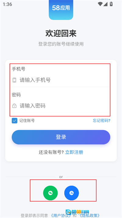 4、之后便能够通过手机号,亦或是微信与支付宝进行登录。