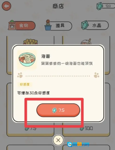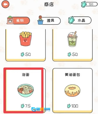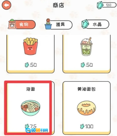2. 在弹出的页面里,切换至食物栏目,点击【泡面】。