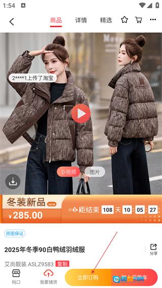 3、于羽绒服商品列表页,挑选感兴趣的商品,比如【2025年冬季90白鸭绒羽绒服】,接着进入商品详情页面。
