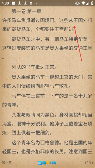 4、当进入【第一卷第一章】,就能阅读相应内容。