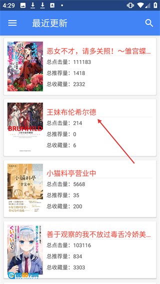 1. 在近期更新列表里寻得【王妹布伦希尔德】,然后点击进入。
