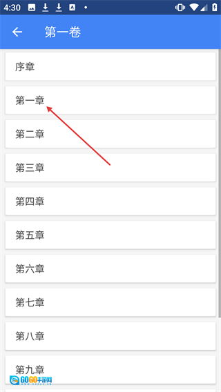 3、于【第一卷】页面里,点击【第一章】。