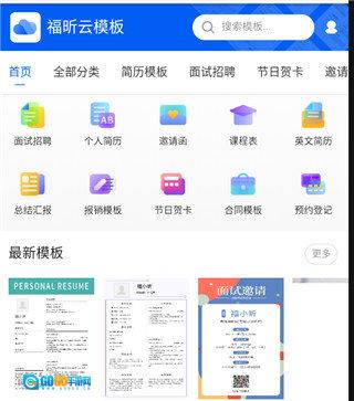 2. 点击福昕云模板,这里为用户提供海量不同类型的模板,涵盖简历、汇总、邀请函等。