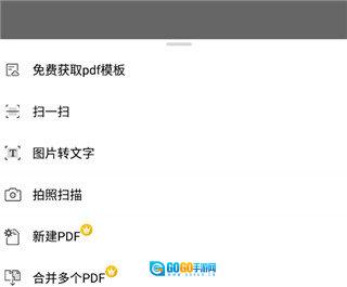 3、轻点文档页面左下角的 + 按钮,即可自行创建PDF文档,还能使用图片转文字、合并等功能。