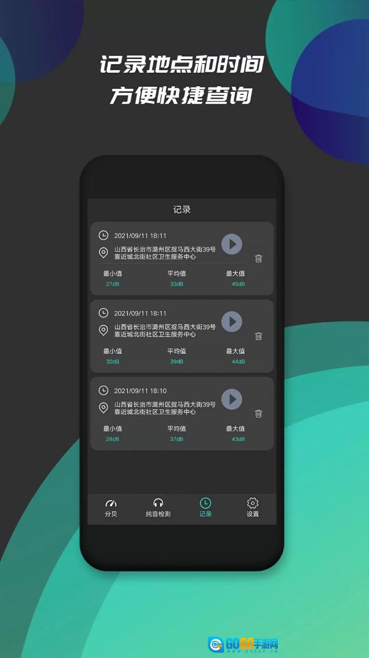 3、专业分贝检测:采用高精度噪声测量方式,并搭配仿真机械表盘设计。