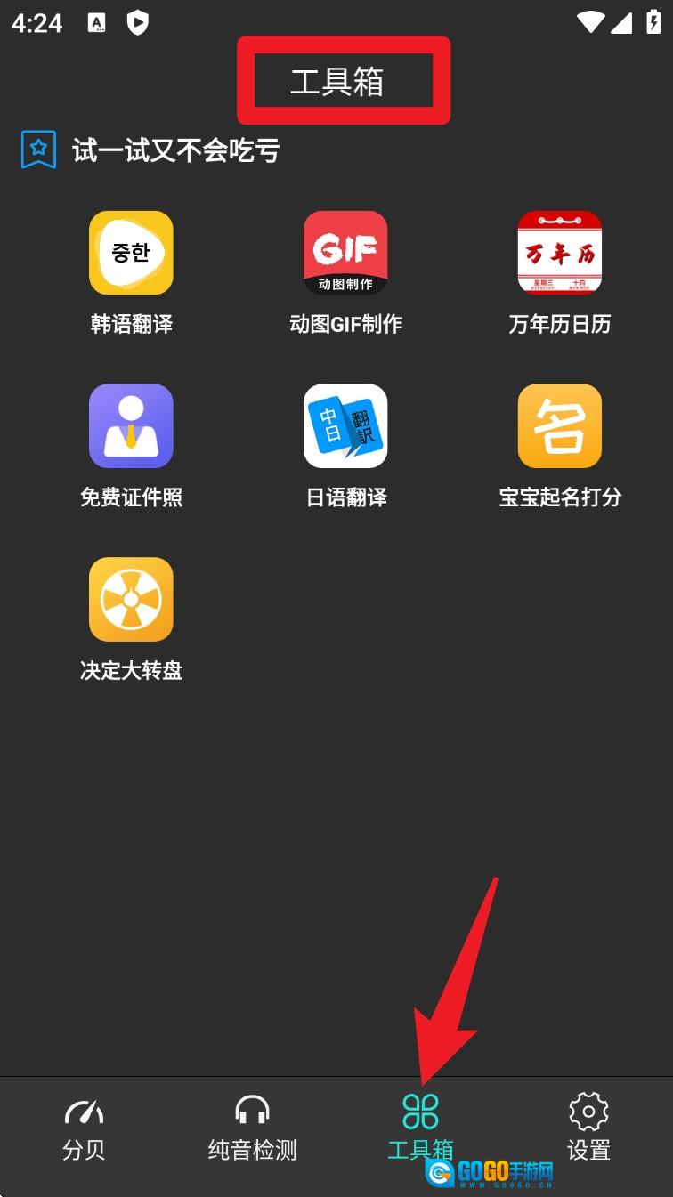 4. 如果您需要使用诸如翻译、证件照制作、起名等额外工具,点击底部的工具箱,即可查看所有内建功能。