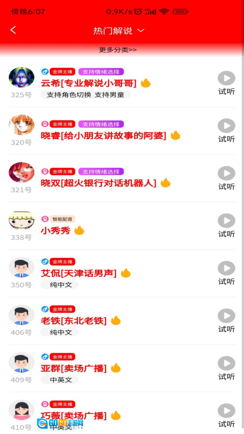 4、浏览众多热门解说资源,能够自主选择试听,随后进行配音操作。