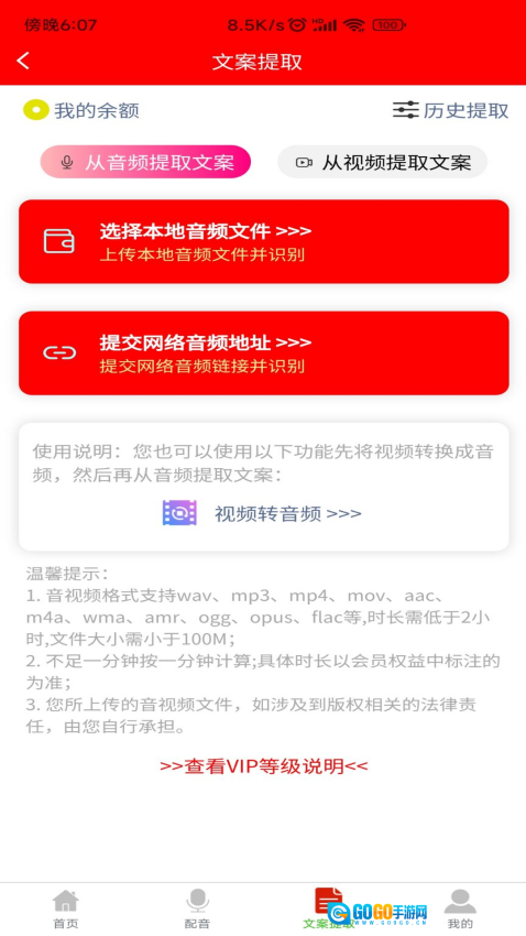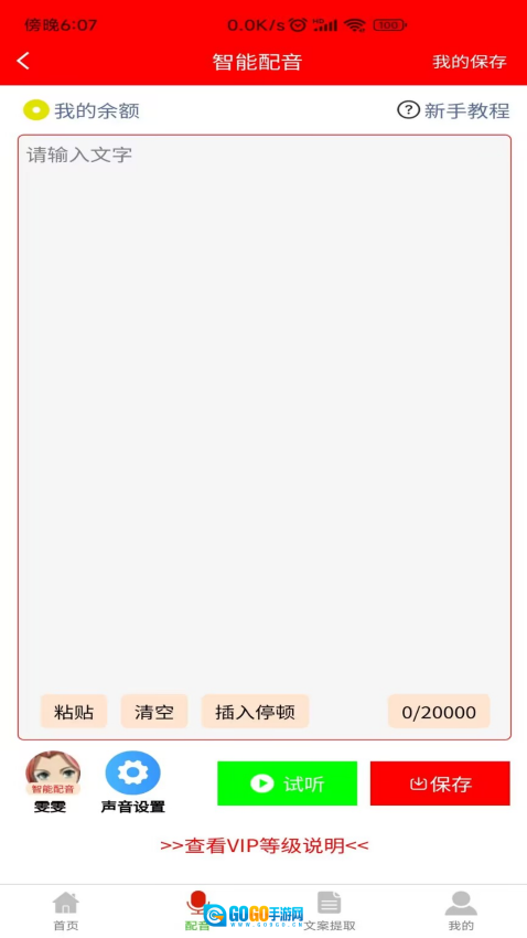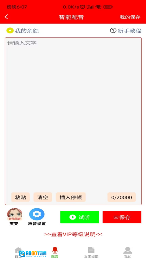 所有提取的文案均可记录保存,在应用内随时能够查看,方便查找与使用配音。