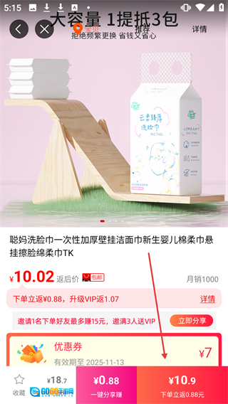4、于商品详情页面领取【优惠券】,下单即可享受立返优惠。