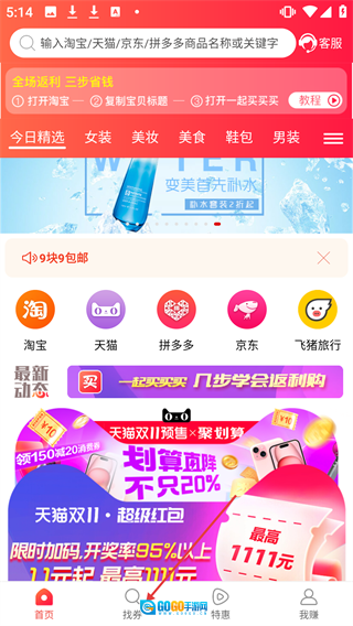 1. 打开软件,点击底部的【找券】,从而进入搜券页面。