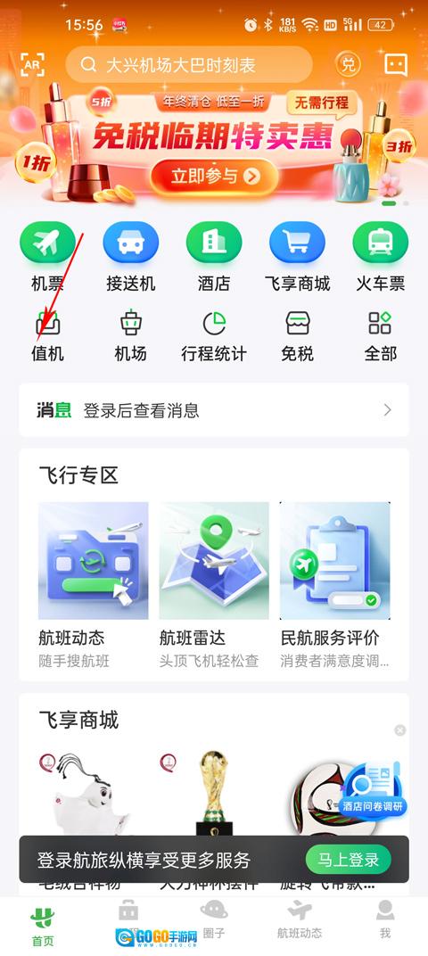 2. 在首页右下角找寻航班动态,随后进入航班动态页面。