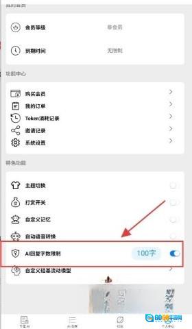 1、于个人中心内寻找到AI回复字数限制这一选项。