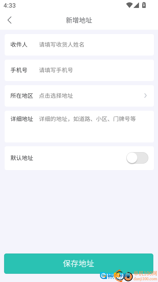 6. 最后依次填入收件人、手机号、所在地区以及详情地址,接着点击“保存地址”按钮,即完成操作。