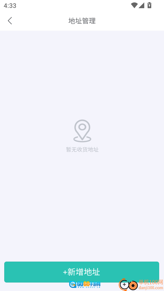 5. 接着进入“地址管理”的菜单界面,点击底部的“+新增地址”功能按钮,点击后进入。