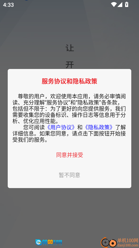 1. 第一步,打开软件,阅读协议与隐私政策,之后点击“同意并接受”按钮,从而进入。