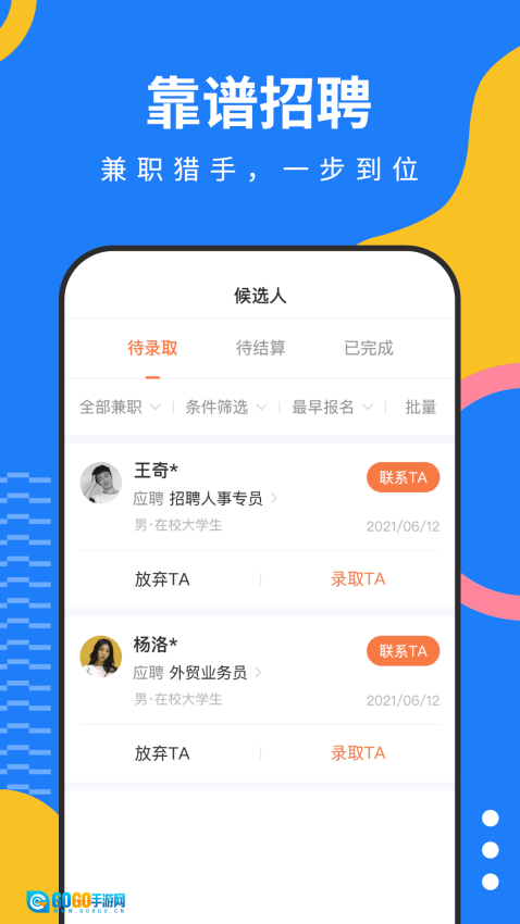淘米乐兼职最新版,这是一款聚焦兼职招聘与高薪求职功能服务的应用软件。其平台涵盖海量精选热门求职岗位,为大学生提供更多招聘与求职机遇。平台上所有招聘岗位均经严格认证审核,绝无虚假岗位,大家可安心在线求职。并且,该软件拥有众多优质高薪日结兼职岗位,完成当天兼职任务,工资即刻发放。不仅如此,淘米乐兼职手机版软件内还有大量真实靠谱的岗位持续更新,全方位满足求职就业需求。对这款程序感兴趣的用户朋友们,可直接来本站体验使用!