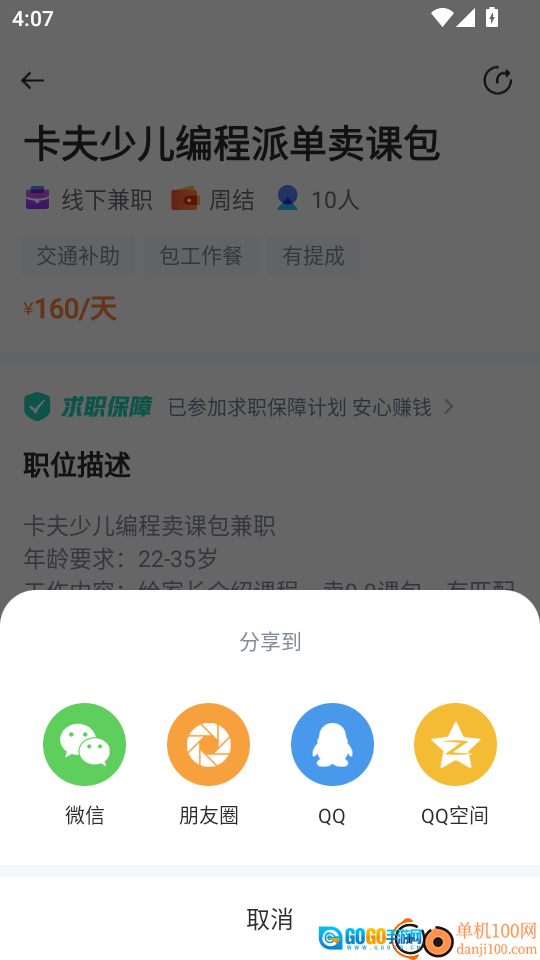 4. 最终进入兼职岗位详情介绍页面,点击页面右上角的“分享”功能按钮,随后即可选择分享至其他平台。