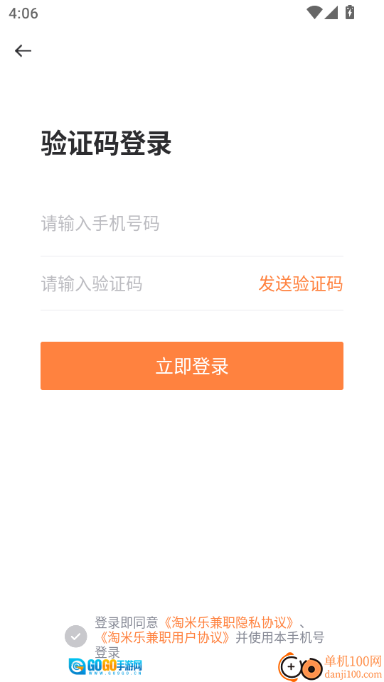 2. 在验证码登录页面,填入手机号码和验证码,随后点击“立即登录”按键,即可进入程序。