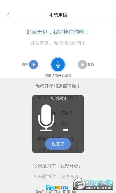 ·提供男女声真人发音,可跟读练习。同时支持自行发音,用于与标准发音作学习对比。