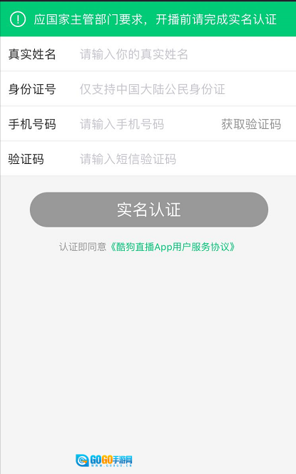 5、实名认证通过点击中间的绿色按钮,即可开始直播。