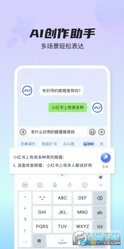 讯飞语音输入法超厉害!每分钟能输入400字,语音输入体验超爽,仿佛带你飞!讯飞输入法软件推出最新版本,AI助力让输入更加便捷。讯飞语音输入法的AI语音识别精准度极高,手写与拼音输入也十分流畅,还支持OCR扫描输入以及面对面语音翻译功能。不仅如此,软件内还有海量精美的皮肤、各种卖萌表情以及可爱的颜文字,绝对是你手机上不可或缺的输入法。