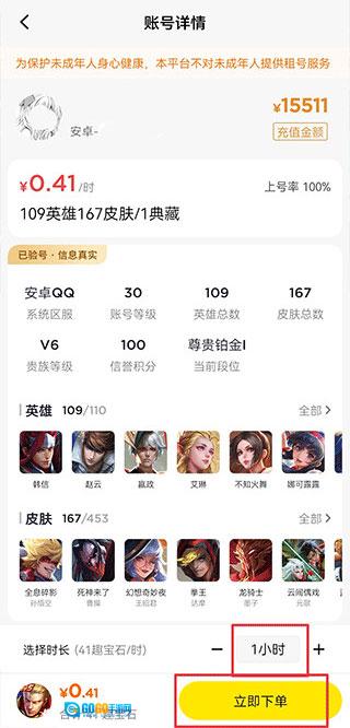 2. 选定租赁时长,随后点击“立即下单”即可。