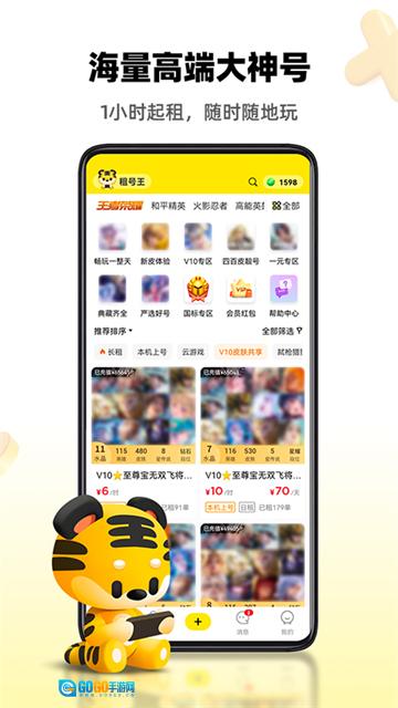 租号王,是一款专注于游戏账号租赁交易的软件。它为广大用户提供了超百款热门游戏的账号出租及租号畅玩服务。平台上的账号不仅精品高端,而且种类丰富多样,还支持一键上号操作。值得一提的是,租号价格颇为亲民,玩家只需花费几块钱,就能租到高端账号,无论是想在游戏中彰显实力,还是带妹子游玩,都是绝佳之选。