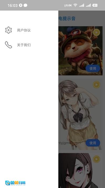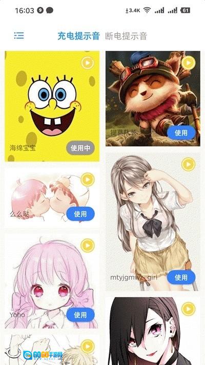 3、里面可以自己来选择,有充电的,充完的,以及充电提醒的音效。