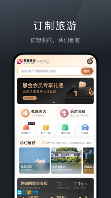 阡鹿旅游作为一款旅游出行服务软件,打造了高端的日常生活订购平台,推出豪华旅游优惠,无论是国内游还是海外游都能适用。借助这款软件,你能够便捷预订酒店与机票,同时软件内备有各类优惠券,能轻松帮您节省诸多费用。